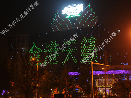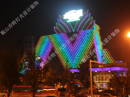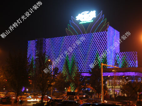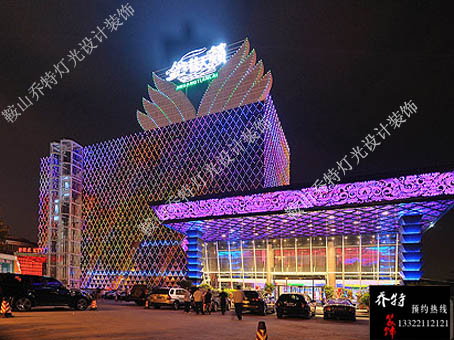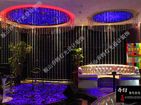 鞍山金港天籟位于商業(yè)繁華的鐵西區(qū)人民路,總營業(yè)面積達(dá)8000平方米,投資4000余萬元建設(shè),目前是鞍山市規(guī)模最大、包房總數(shù)最多、設(shè)施最為豪華的夜場。它以細(xì)致周到的服務(wù),先進(jìn)完整的配置設(shè)施引領(lǐng)著鞍山市娛樂新方向。整體LED室內(nèi)外燈光工程全部由鞍山喬特?zé)艄庋b飾廣告有限公司設(shè)計(jì)與制作。